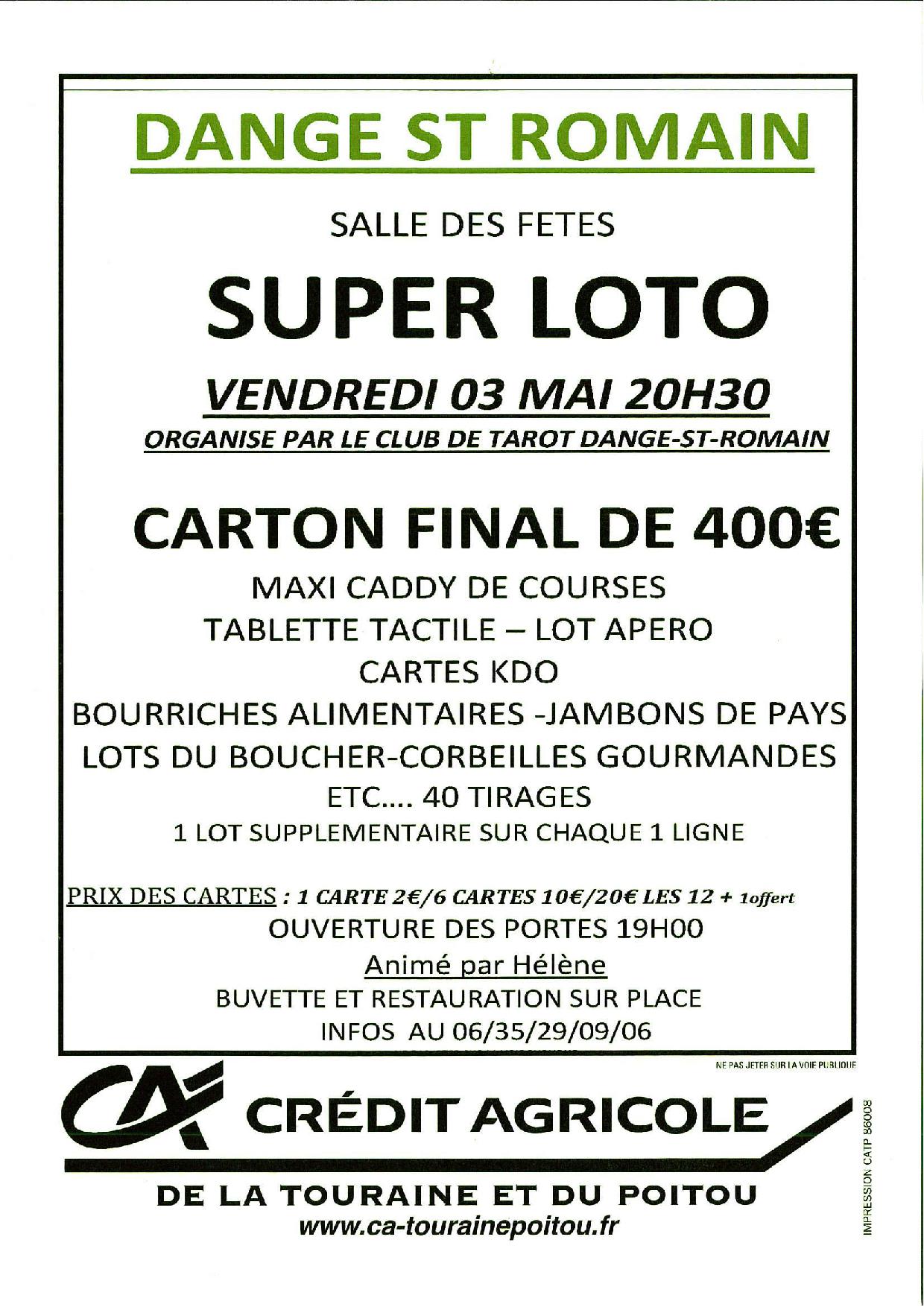 Ne ratez pas le loto du bbcc animé par tino le dimanche 16 février 2020.